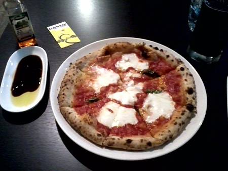 這家也是窯烤披薩~~~~店內可以聞到些微柴燒味~~瑪格麗特上來後~~~~店家有附油醋和自製的橄欖辣油~可以沾披薩一起吃~