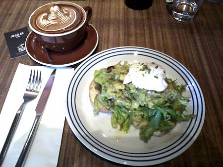 東西都單點~~~生意也很好~我點的是卡布奇諾和史朵兒諾蔓[一種生菜酪梨及半熟雞蛋放在法式酸麵包上的一種餐點]