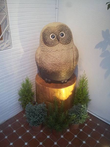 (純白色的門面馬上就吸引到年青人了~~旁邊的貓頭鷹雕像也很可愛~~)