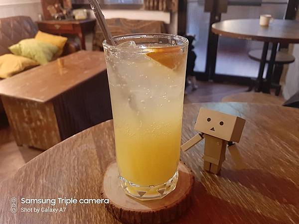 柳橙氣泡飲~~這杯色澤還蠻漂亮的~~拍起來乍看之下還蠻像調酒的ww~這杯攪拌後喝起來還蠻清爽的~~還有柳橙天然的香氣跟甜味~~這杯我覺得還不錯~~而且喝完後也難得讓我晚上的食慾給整個打開了ww