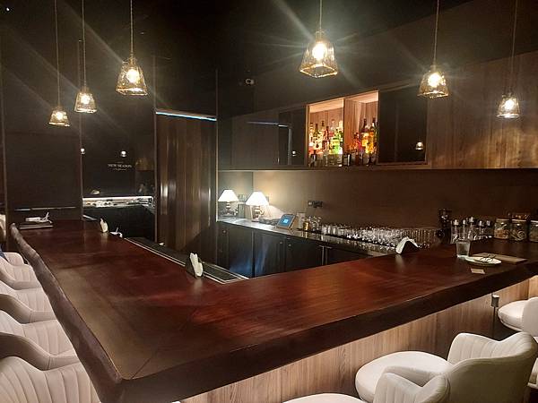 因為一進店時看到只有幾個前面幾張桌椅~就在我以為這家空間不算大時~~沒想到推開隱形門的設定~KOLEN店內後方還設有酒吧~跟前面明亮的氣氛不同~~後方的酒吧燈光灰暗很多~木製吧台搭配旁邊擺設的各式酒瓶~氣氛上給人一種十分沉穩的風情ww~~