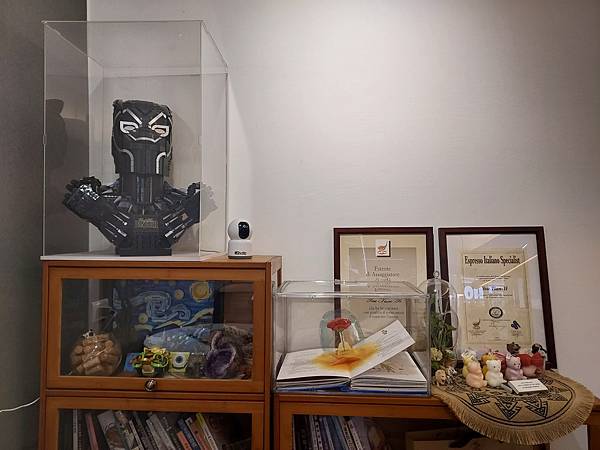店內空間算比我想像中要迷你很多~但環境收拾的算相當不錯~沒有因為店內空間狹小就隨處堆放東西~~那個咖啡屋的店內裝潢風格我也蠻喜歡~~帶有一些淡淡時髦風的設計讓看了蠻順眼的~~在角落的櫃子裡還可以看到老闆收藏的各種玩具模型~