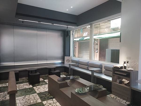 店內空間嚴格來說並不算大~~但設計相對開闊~所以視覺上不會令人感到擁擠~這家座位區設計也很別緻~桌面不大~同時座椅風貌也給人感覺很有個性~~落地窗外的景色則是大同區當地的傳統廟宇~搭配店內科技感十足的裝潢可以說是形成十分有趣的對比~